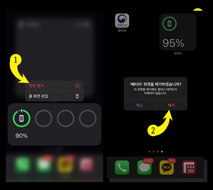 애플 아이폰의 배터리 위젯 삭제하는 방법