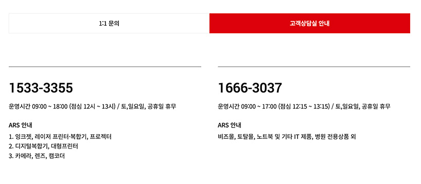 위에 방법처럼 집 근처의 서비스센터를 찾는게 아니라 상담을 통한 문제 해결이나 접수를 원하면 캐논 서비스센터 고객상담실로 연락하여 진행하는 방법이 있습니다.