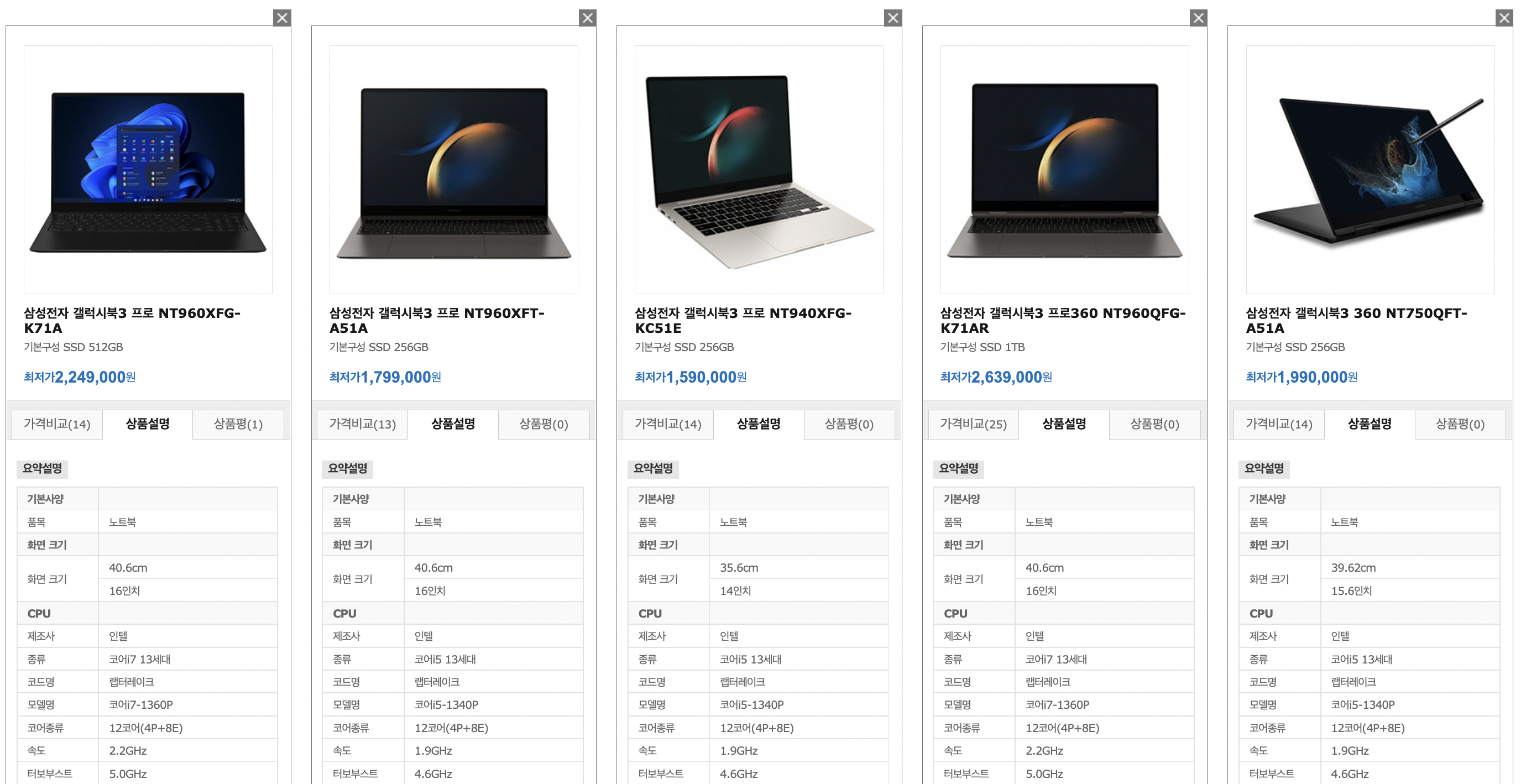 갤럭시북3 프로 / 360 / 프로 360 / 울트라 가격